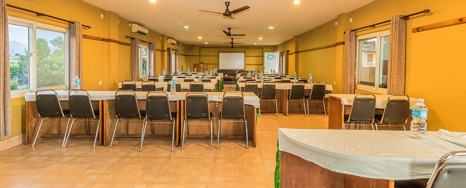 Our versatile meeting hall can be configured to accommodate a variety of group sizes.
